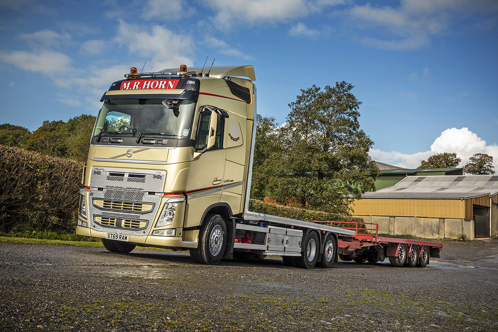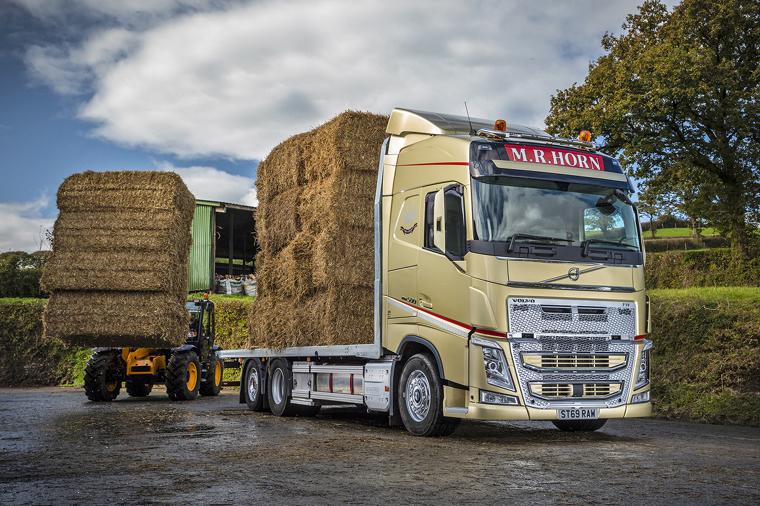 Devon based, M.R. Horn Transport Ltd has taken delivery of a special liveried gold Volvo FH 6x2 rigid to mark its 35th anniversary of transporting hay and straw.